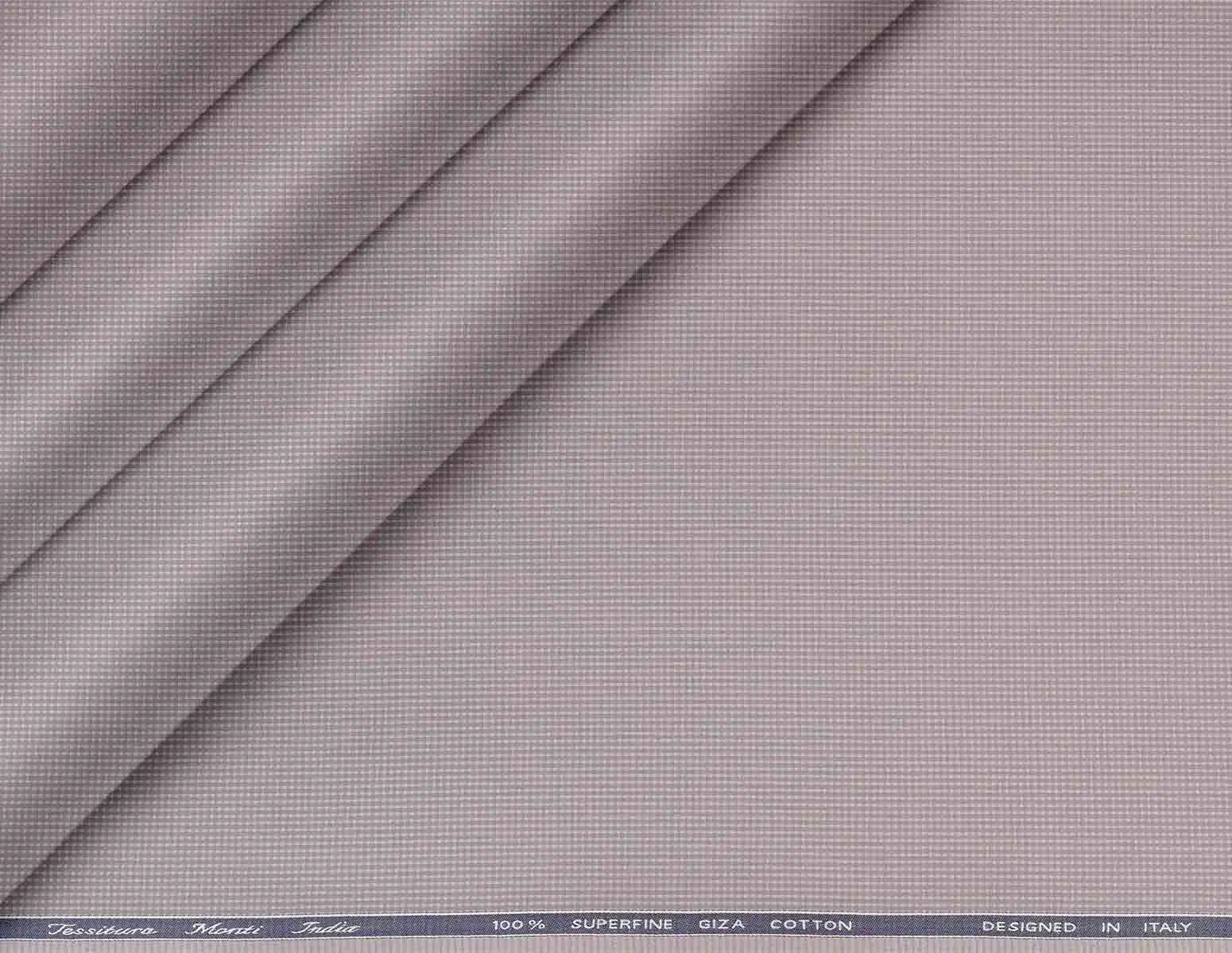 This fabric features a sophisticated grey lilac shade with an all-over dot micro structure, creating a refined, textured effect that appears smart and understated for both business and evening shirts. Woven by Tessitura Monti India in 100% superfine Giza cotton and designed in Italy, it delivers a luxurious, breathable hand feel and coordinates seamlessly with classic and contemporary tailoring. Best used for premium shirts offers a modern muted colour and subtle pattern that enhance a polished, versatile wardrobe for today’s men.