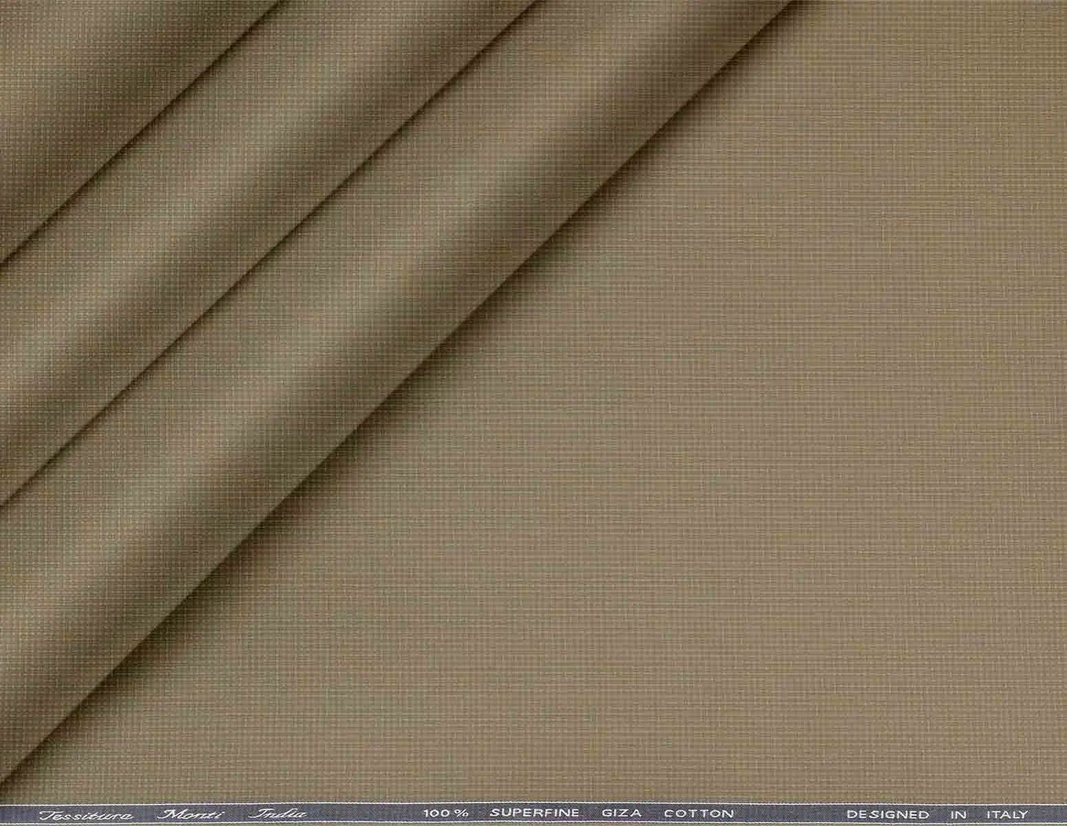 This fabric features an olive beige shade with a refined dot micro structure, giving a textured yet understated appearance that works beautifully for sophisticated day and evening shirts. Woven by Tessitura Monti India in 100% superfine Giza cotton and designed in Italy, it offers a luxurious hand feel, high breathability, and coordinates seamlessly with earthy and classic tailoring.Best used for premium shirts introduces a modern, versatile neutral with subtle patterning to contemporary men’s wardrobes while maintaining a crisp, polished look.