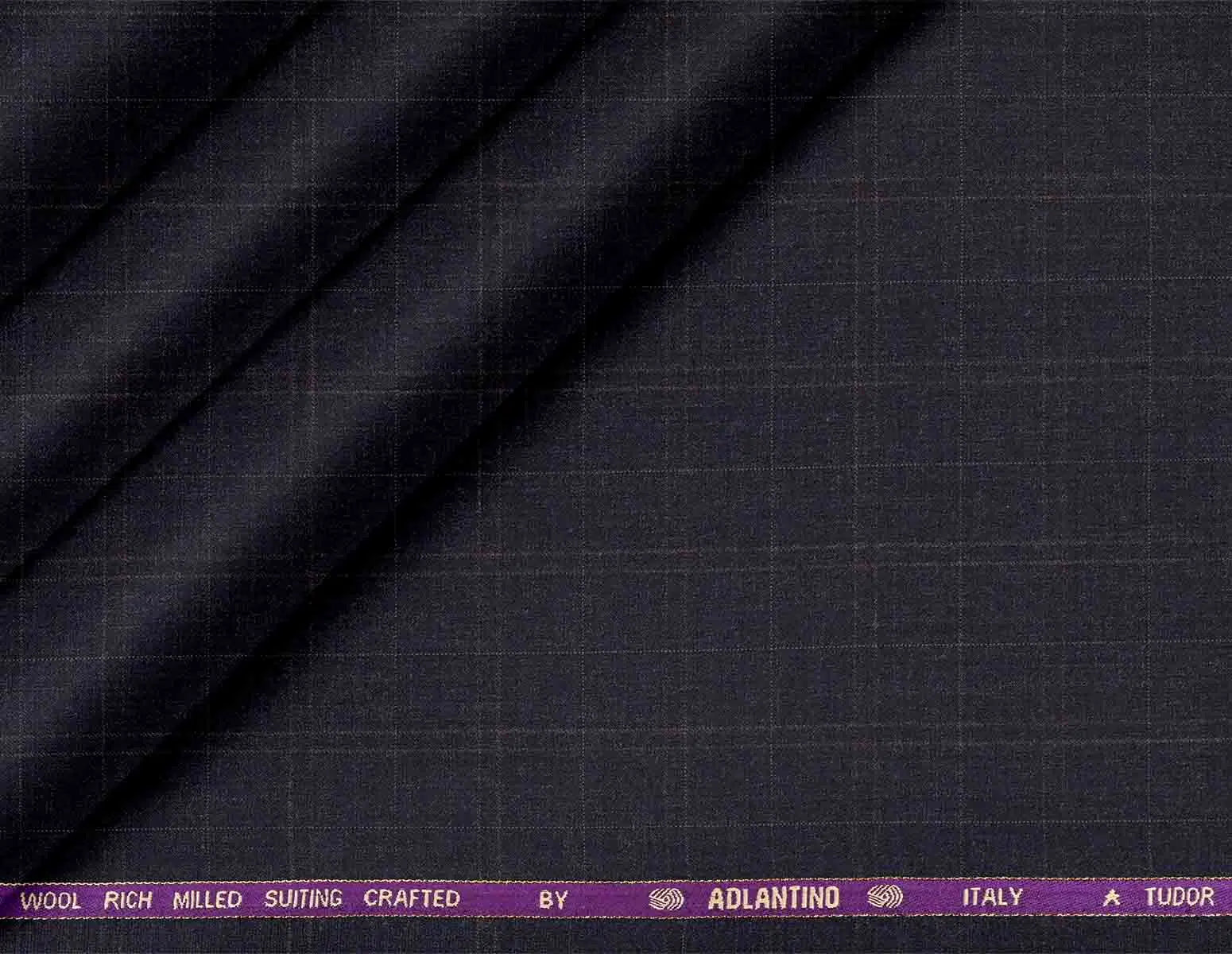 This distinguished fabric is a Super 130's wool-rich milled suiting, expertly crafted by Adlantino Italy Tudor. Featuring a sophisticated navy base with a refined checks micro structure, it merges the elegance of fine wool with the durability of polyester fibers. The subtle checked pattern adds texture and visual interest while maintaining a refined, professional appearance. Perfect for contemporary and traditional Indian menswear, this versatile fabric is ideal for Jodhpuri suits, kotis, jackets, suits, and tailored pants. Its balanced blend delivers exceptional comfort, drape, and year-round wearability for the discerning modern gentleman.