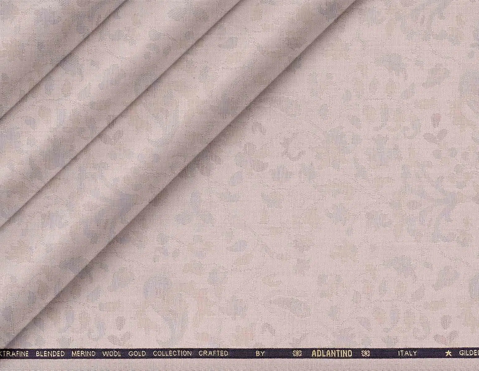 This fabric is crafted from Super 120s extrafine blended merino wool as part of the Adlantino Gold Collection, featuring a micro jacquard structure with delicate all-over floral and paisley motifs. The color palette is an elegant mix of soft almond beige with subtle hints of pastel blue and rose, giving the material a unique lightness and sophistication. Ideal for Jodhpuris, kotis, jackets, suits, and pants in poly wool blends, this fabric is perfect for modern men who appreciate comfort, intricate detail, and contemporary style in formal and ethnic attire.