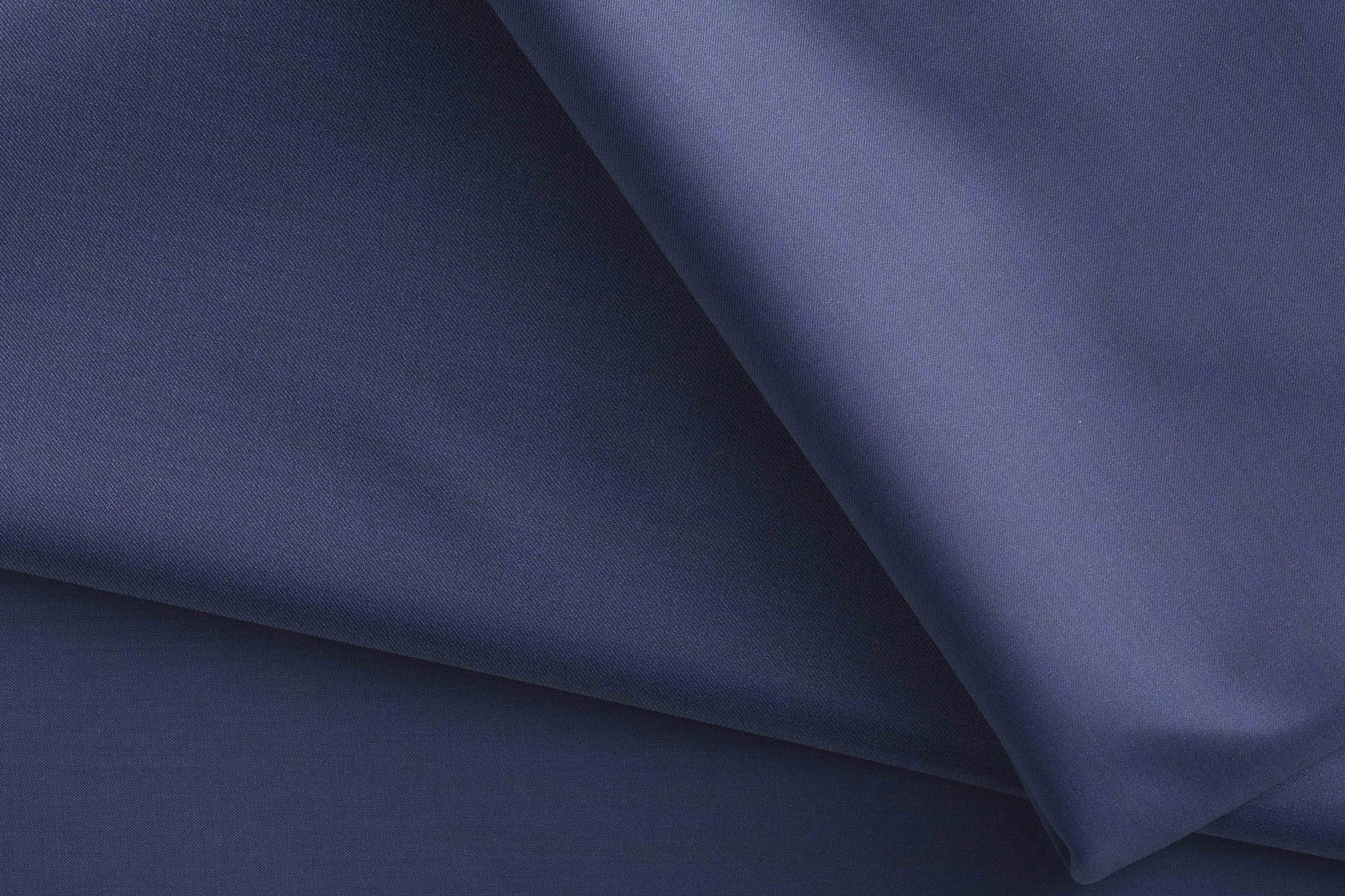 Navy blue poly wool suiting fabric with a refined plain micro structure, woven from Super 90’s extrafine merino wool blend and crafted by Adlantino England, offering a smooth, modern look with excellent fall for tailored ensembles. This versatile navy shade works beautifully for Jodhpuris, Nehru-style kotis, structured jackets, formal suits and sharply cut trousers, making it an ideal choice for contemporary men seeking a polished yet comfortable poly wool wardrobe.