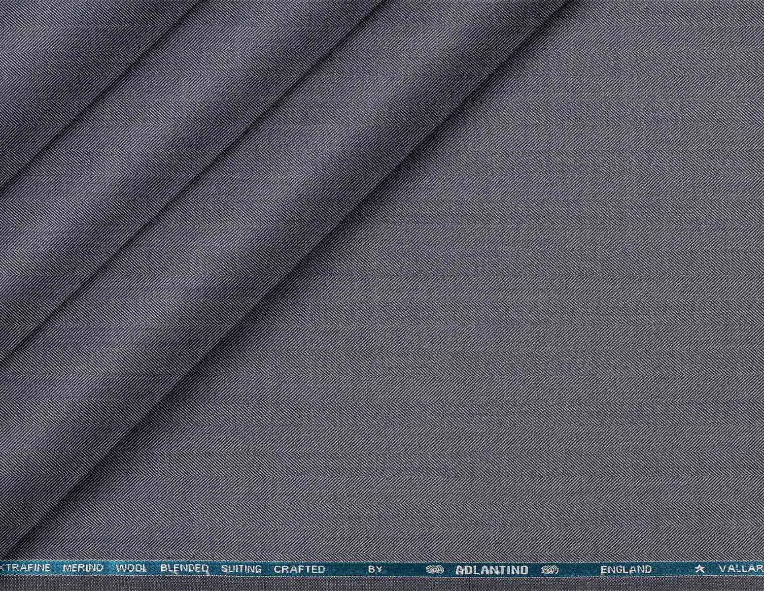 This fabric is Super 90’s extrafine merino wool blended suiting crafted by Adlantino, England, from the Vallarta line, offering a smooth, premium handfeel with excellent fall and structure after tailoring. The surface features a subtle micro-structured herringbone pattern in mid grey with soft blue undertones, giving a clean, sophisticated look that reads almost solid from a distance yet shows rich texture up close.The poly wool blend combines breathable merino comfort with the durability, crease resistance and easy maintenance of polyester, making it highly practical for regular and occasion wear. This versatile fabric is ideal for Jodhpuris, Nehru-style kotis, tailored jackets, full suits and smart trousers or pants, delivering a sharp, modern silhouette suited to business, festive and wedding settings.