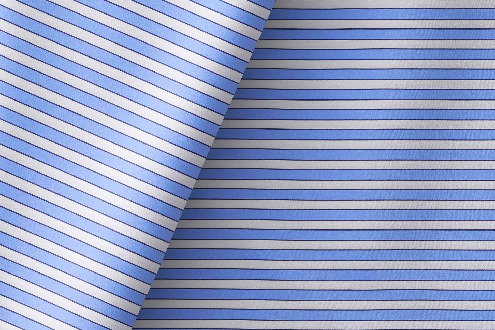 Super Ply 120’s Tessitura Monti India 100% Superfine Giza Cotton – Sky Blue Navy Fine Stripe
