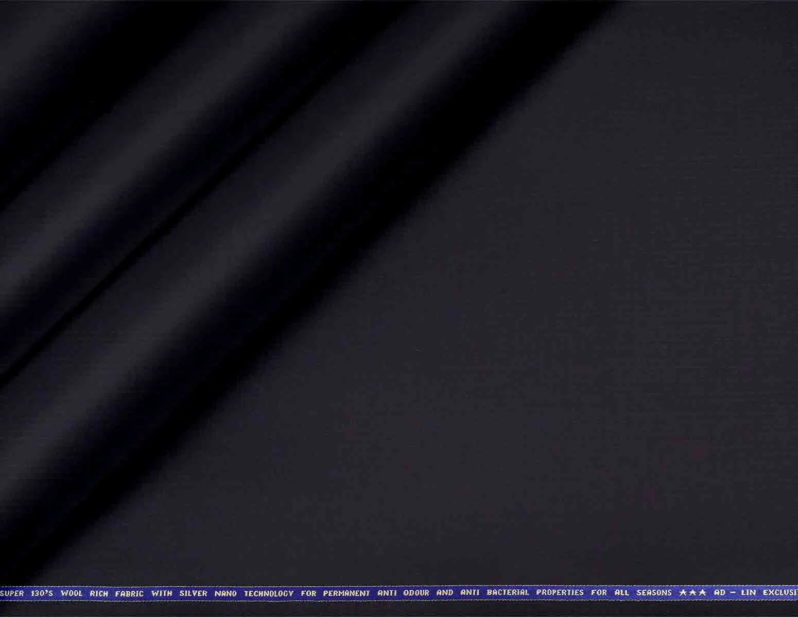 This image presents Caneva Super 130s wool rich fabric, a premium poly wool blend designed for year-round wear with advanced hygiene benefits for modern menswear. The microstructure weave in a classic dark navy hue offers a smooth, refined texture, and understated luxury for tailored garments across ethnic and Western styles.The fabric features a subtle microstructure design, ensuring lightweight comfort, excellent drape, and crisp tailoring without sacrificing durability.jpgIts deep shade and understated pattern provide versatile elegance, suitable for high-end formalwear, including Jodhpuri suits, kotees, jackets, and pants.